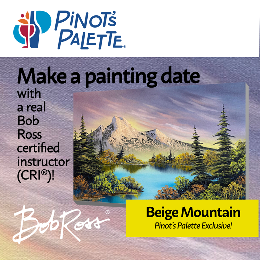 Are you yearning to unleash your inner artist and create breathtaking masterpieces that captivate the soul? Look no further! Pinot’s Palette proudly presents Beige Mountain Oil Painting Class, guided by a Certified Bob Ross Instructor – an opportunity like no other!