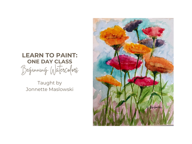 Learn to Paint One Day Watercolors Class is a foundational art class hosted by the Ally and B Photography studio in downtown Naperville, IL. This one day class is geared toward students with beginner to intermediate experience, where they will practice the basic building blocks for enjoying watercolor painting. The class will be taught by Jonnette Maslowski, a former teacher of 28 years and lifelong artist. Jonnette is a member of the Naperville Art League and her paintings have won numerous awards.